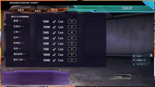 第一天在商店里买带刺棍、对魔装甲三套跟淫纹。衣装中脱掉两件魔法少女装备,并装上淫纹。