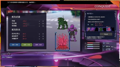 接下来就是不断提升受虐,然后依序点出「机械工学Lv2」、「人造士兵研究Lv2」,把征服队伍换成两个特殊改造士兵Lv3、一只猎犬MK-2,装上带刺棍、对魔装甲就能去挑战高级了。