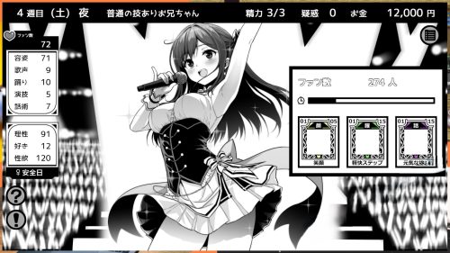 由于游戏周期长达一百周,育成部分的难度相当宽松,达成百万粉丝的目标也不苛刻。