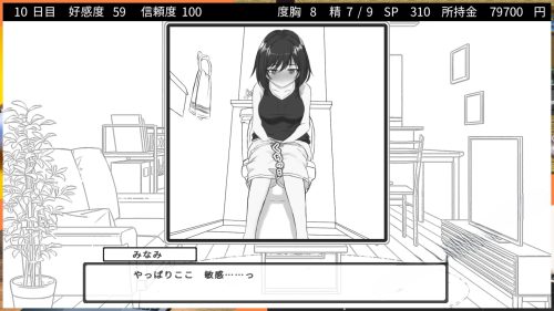 通过对话可以提升好感度;运动能够获得技能点数(SP),用于强化各类技能;而工作则是唯一的赚钱方式,所得金钱可用于购买道具或礼物。