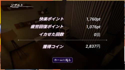 不过其实本作没有什么惩罚机制,结束一次按摩就回到标题后再开下一次,可以一直累积金钱、开发等级。