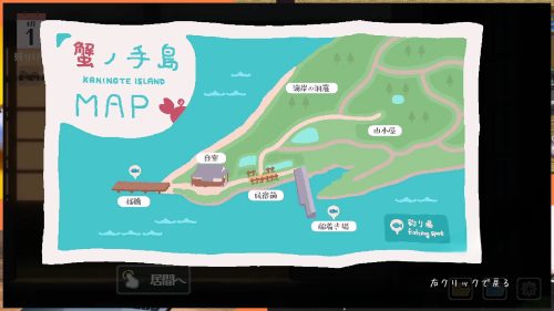 游戏中以民宿「赤色螃蟹(あかいかに)」作为据点,玩家可以在屋内以及岛上的各个地点自由行动。