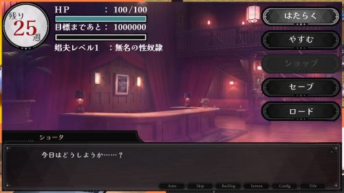 被嫖可以赚取金钱、获得娼夫经验并消耗体力;如果体力归零就会 Game Over,因此也需要适当地休息。