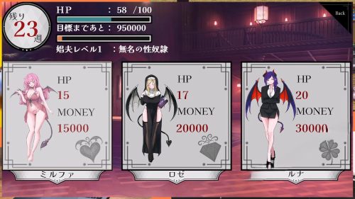 舞台设定在魔界的娼馆中,目标是在二十五周内存够一百万,为自己赎回自由。