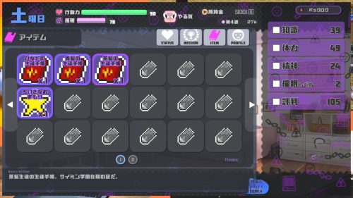 而为了把他们找回来,你需要获得与成员有联系的特殊物品,像是他们的学生证等。并且某些事件可能需要一定程度的属性,需要使用特训提升属性。