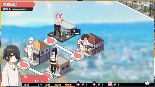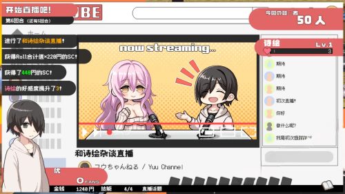 本作是一款形式简单的大富翁类游戏,目标是赢得直播平台的比赛。